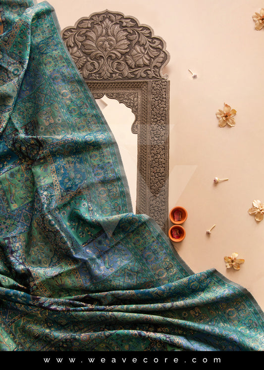 Turquoise Blossom: Floral Symphony Kani Silk Shawl