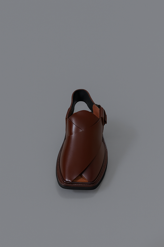 Weavecore Classic Brown Peshawari Chappal – Shiny Leather Edition