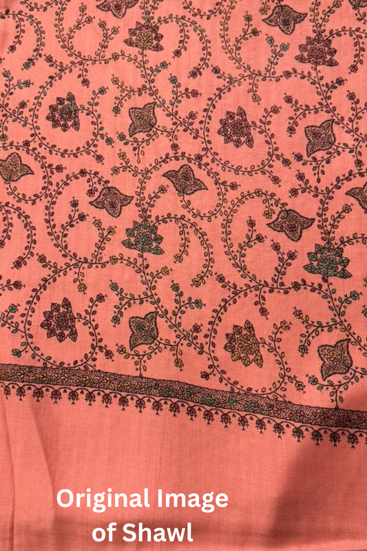 Kashmiri Aari Jaal with Border Shawl - Coral Shade